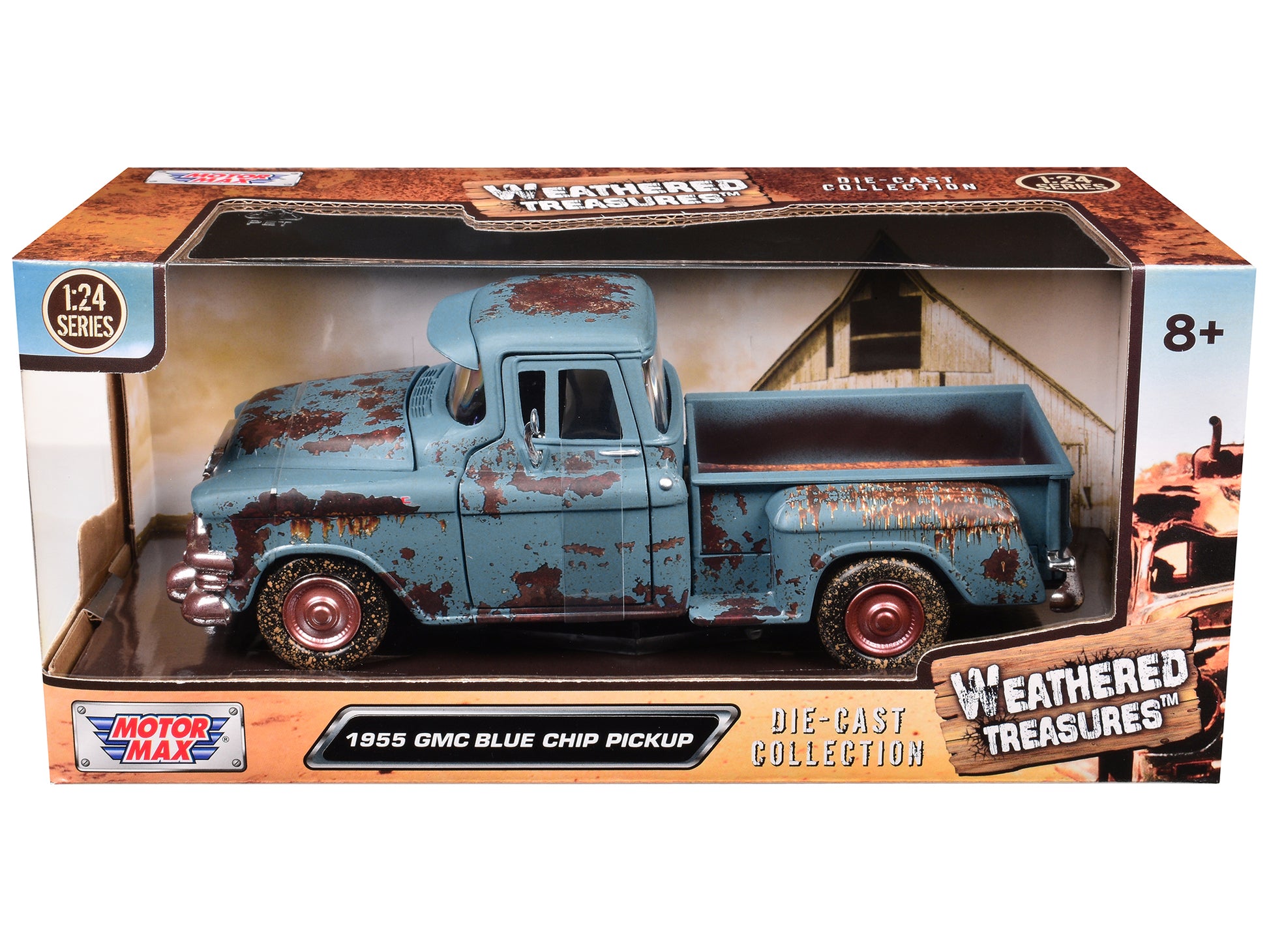 - Brand new 1/24 scale diecast car model of 1955 GMC Blue Chip Pickup Truck Matt Blue (Rusted) "Weathered Treasures" Series die cast model car by Motormax.