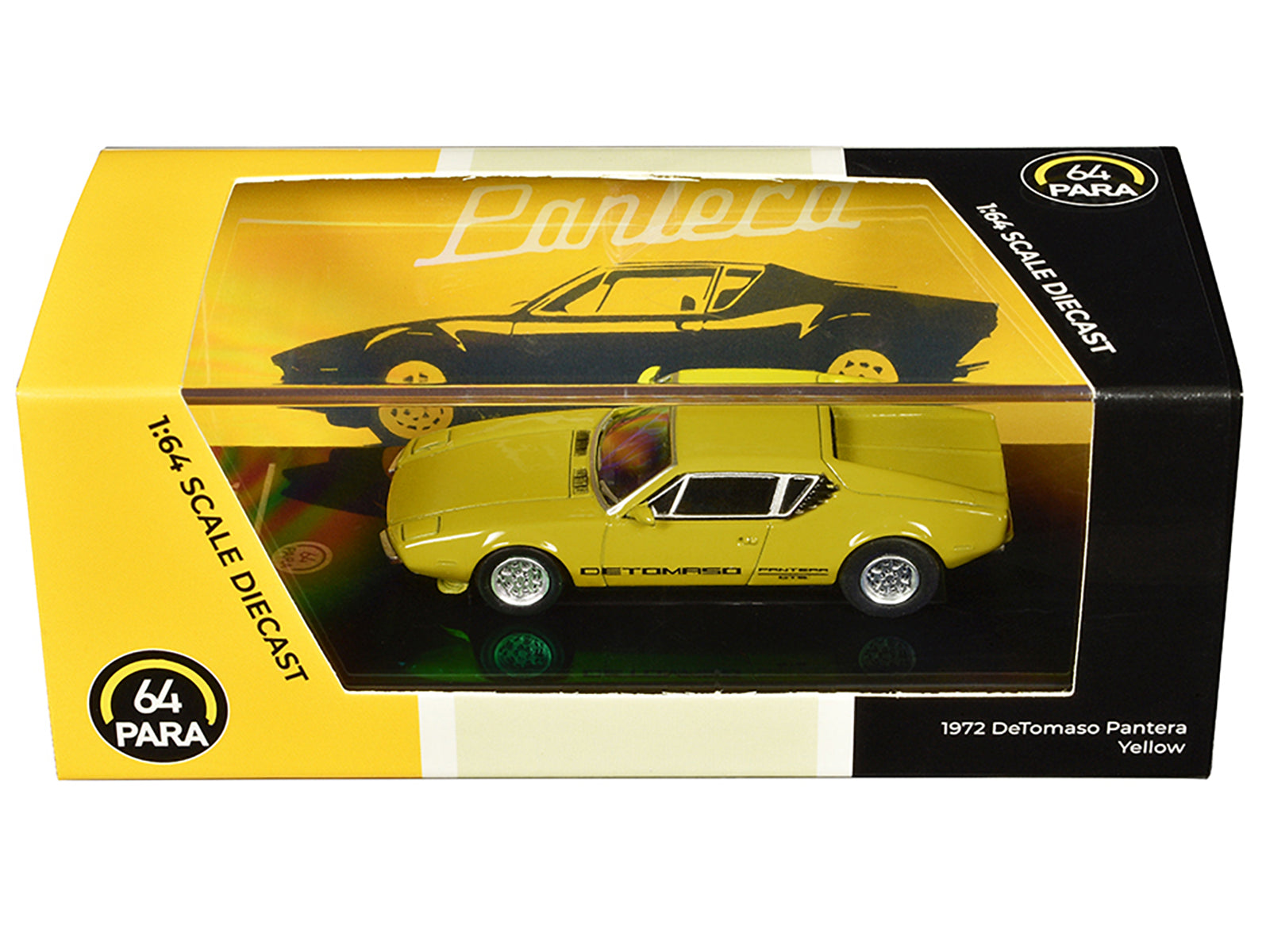 - Brand new 1/64 scale diecast car model of 1972 De Tomaso Pantera Yellow die cast model car by Paragon.