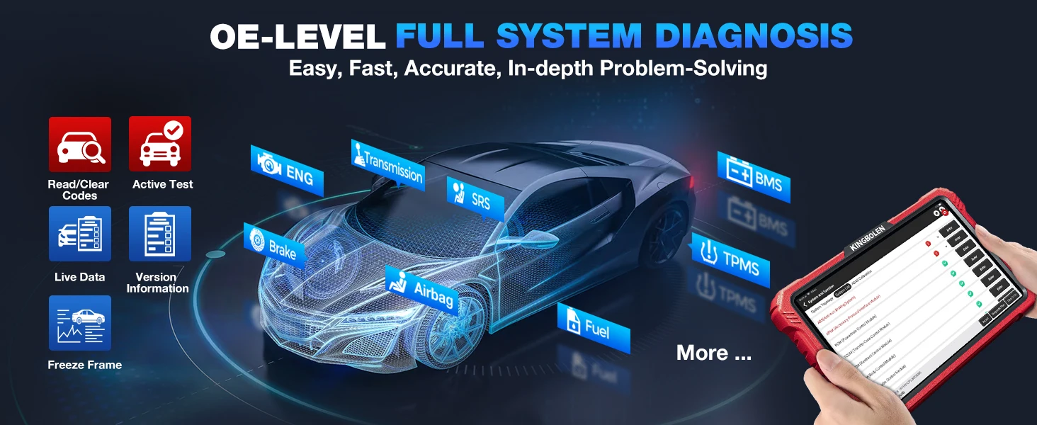 KINGBOLEN K10 pro code scanner comes with a 2-year update. One-Touch update via WiFi to enjoy more functions, get wider available vehicle coverage, add more languages, and improve the performance.
