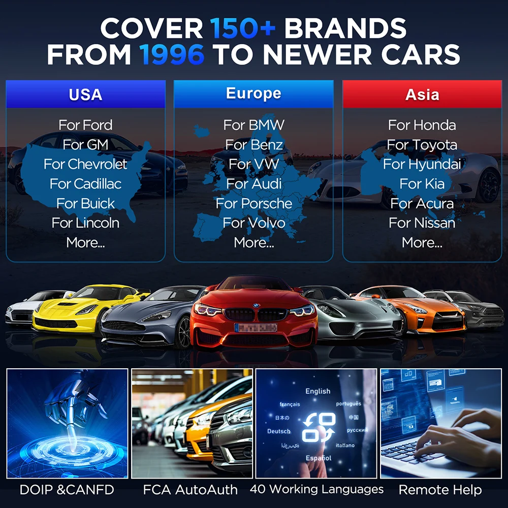 10 supports all electronic control systems on 12V EFI models, incl. more than 150 European, American and Asian models like Maserati, Ferrari, Rolls Royce, Bentley, Mercedes-Benz, BMW, Audi.Diagnose the electronic control system of prevailing vehicle models covering Asian, European, American and Chinese. It achieves full car model and full system vehicle trouble diagnosis