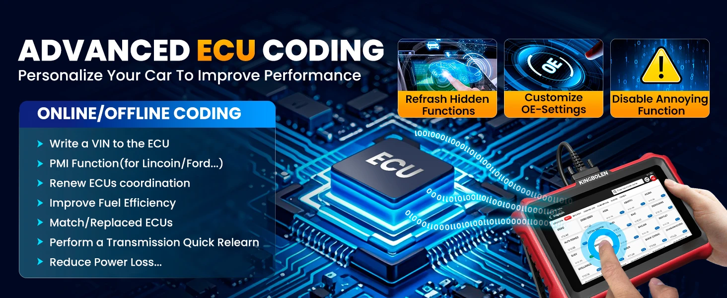 The advanced coding function is used to re-flash the vehicle control modules, which allows you to update the computer software on the vehicle to the latest version, as well as to reprogram adaptive data for certain components after making repairs or replacements, providing solutions for the issues of drivability, fuel efficiency, power loss, fault codes, durability of mechanical parts etc. But please note, ecu coding are NOT universal for all vehicles, please check compatibility with VIN number before purchase.