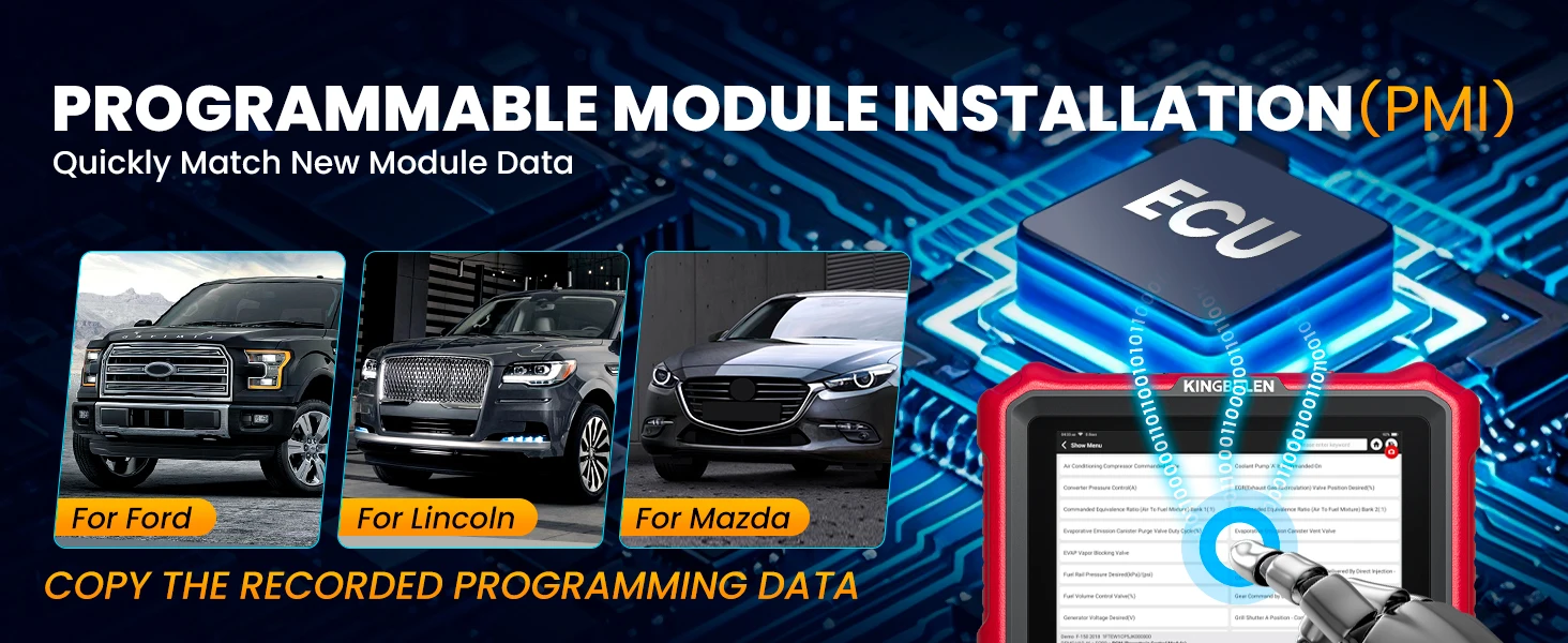 This function of k10 pro scanner is used to match new module data. When replacing the ECU with a new module, copy the recorded programming data of the original vehicle module into the new module to program the new module,which is used for Ford/for Lincoln/for Mazda.
