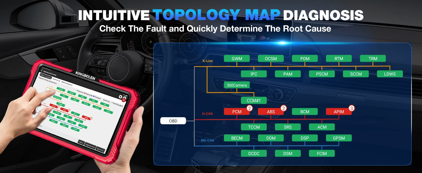 KINGBOLEN K10 Pro Full Systems 10" Car Scanner Topology Map, Bidirectional Scan Tool Bluetooth OBD2 Scanner, 41+ Reset Service, ECU Coding, FCA AutoAuth, CANFD & DOIP,2 Years Free Update, V.A.G Guided