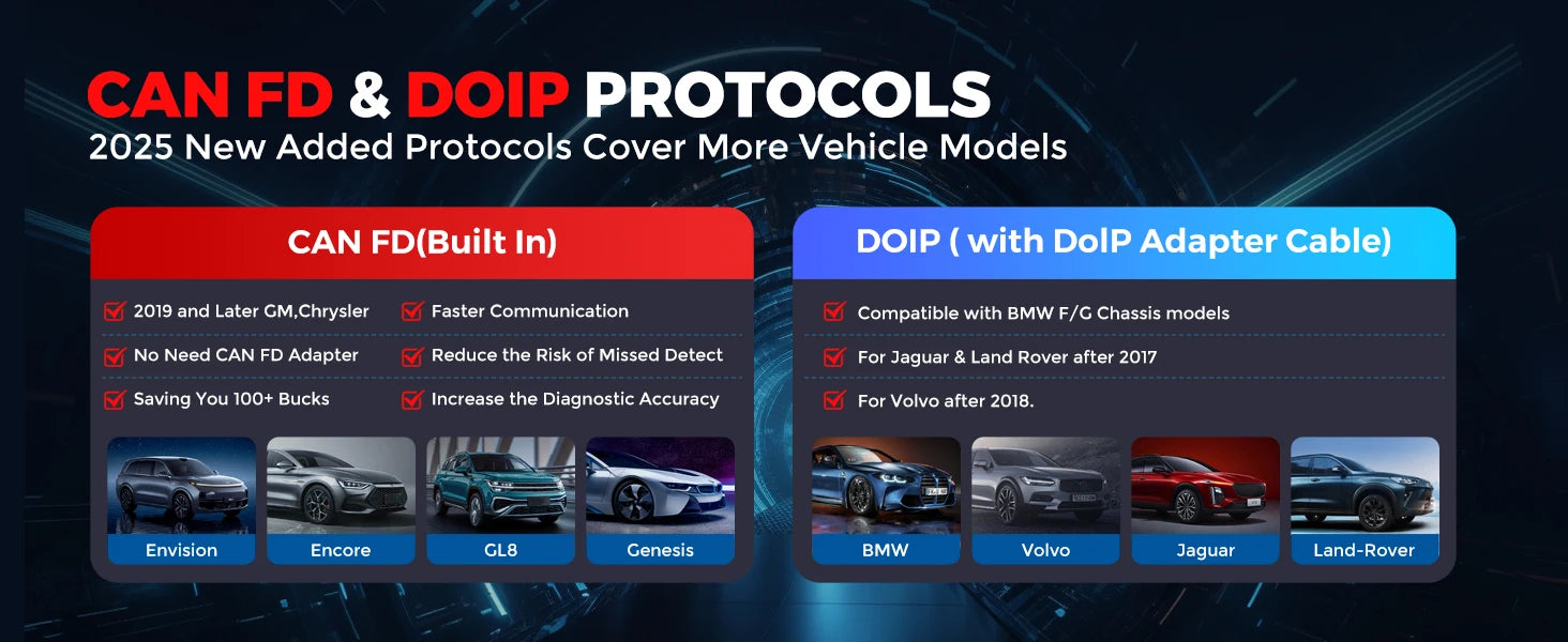 it is the only product in this price range that is compatible with CAN-FD protocol and supports the latest For GM vehicles manufactured after 2020. Adopts advanced CRC algorithms to accommodate more data from 8 to 64 bytes in the CAN frame, which runs faster than other products and reduces the risk of undetected errors to greatly enhance the user experience.
