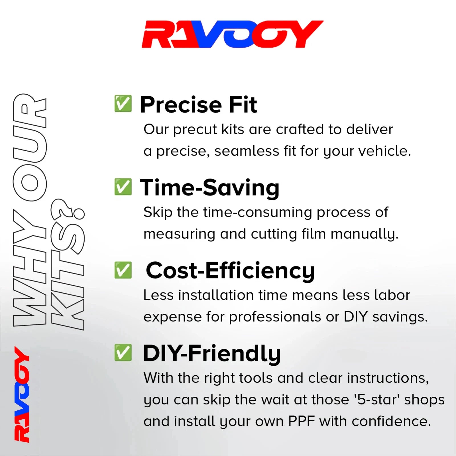 Choose RAVOOY Supreme Defense PPF for unparalleled, close-fitting protection that shields your vehicle from scratches, aging, and environmental damage, keeping your car looking flawless and brand new.