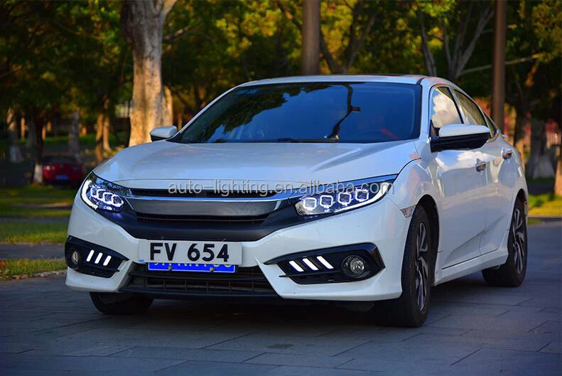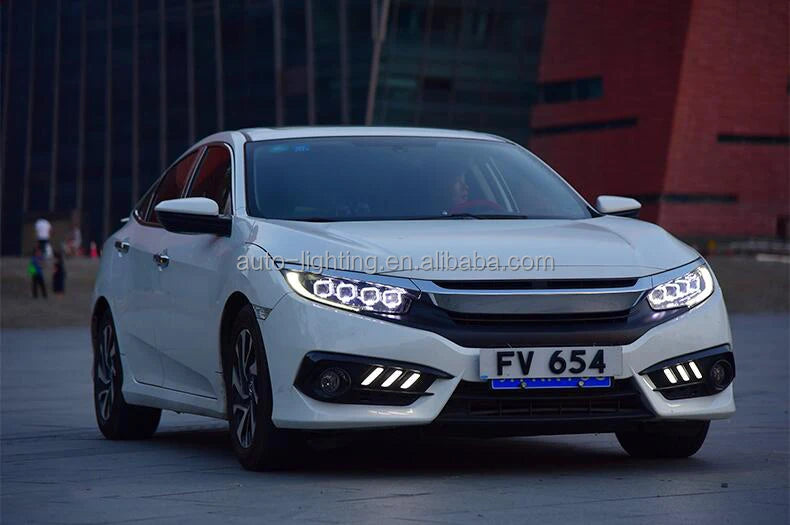 AKD-Car Styling Head Light Parts for CIVIC X G10 Bugatti Modified LED Lamps Headlights DRL Dual Projector Facelift
