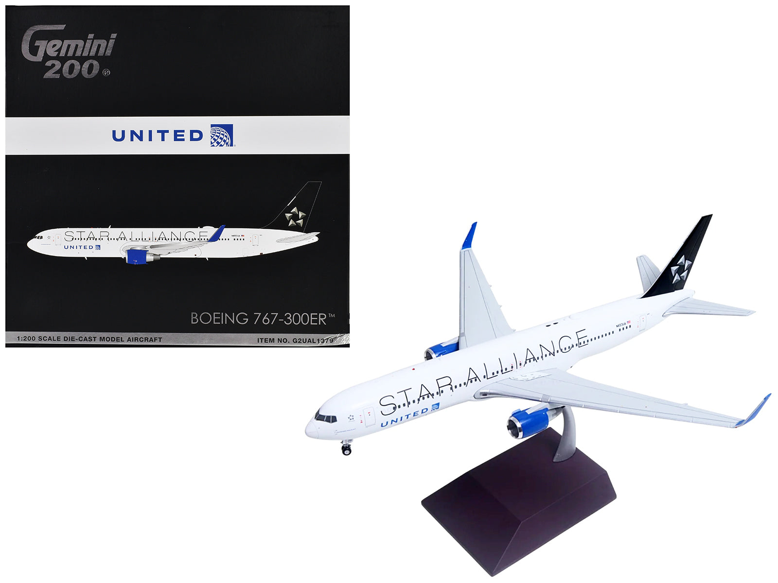 - Brand new 1/200 scale diecast airplane model of Boeing 767-300ER Commercial Aircraft "United Airlines - Star Alliance" (N653UA) White with Black Tail "Gemini 200" Series die cast model by GeminiJets.
