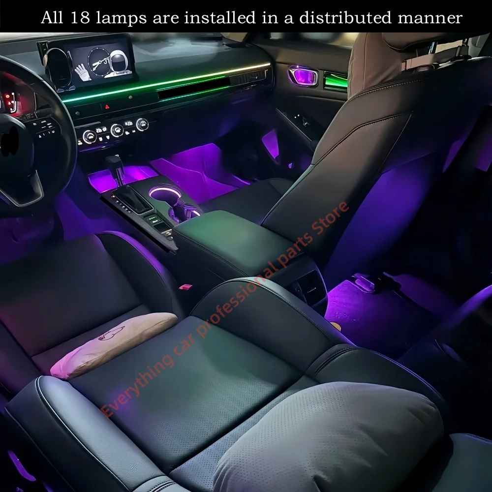 Car 64-color Dynamic Ambient light for Honda Civic Door LED LCD Trim Interior light modification Button APP control mode