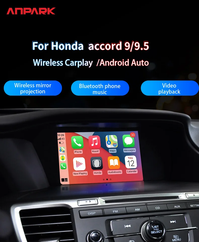 Car Media Player For Honda Accord 9 9.5,2013 2014 2015 2016 2017 5G Wireless Carplay Android Auto Bluetooth Phones, Music