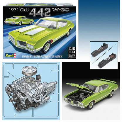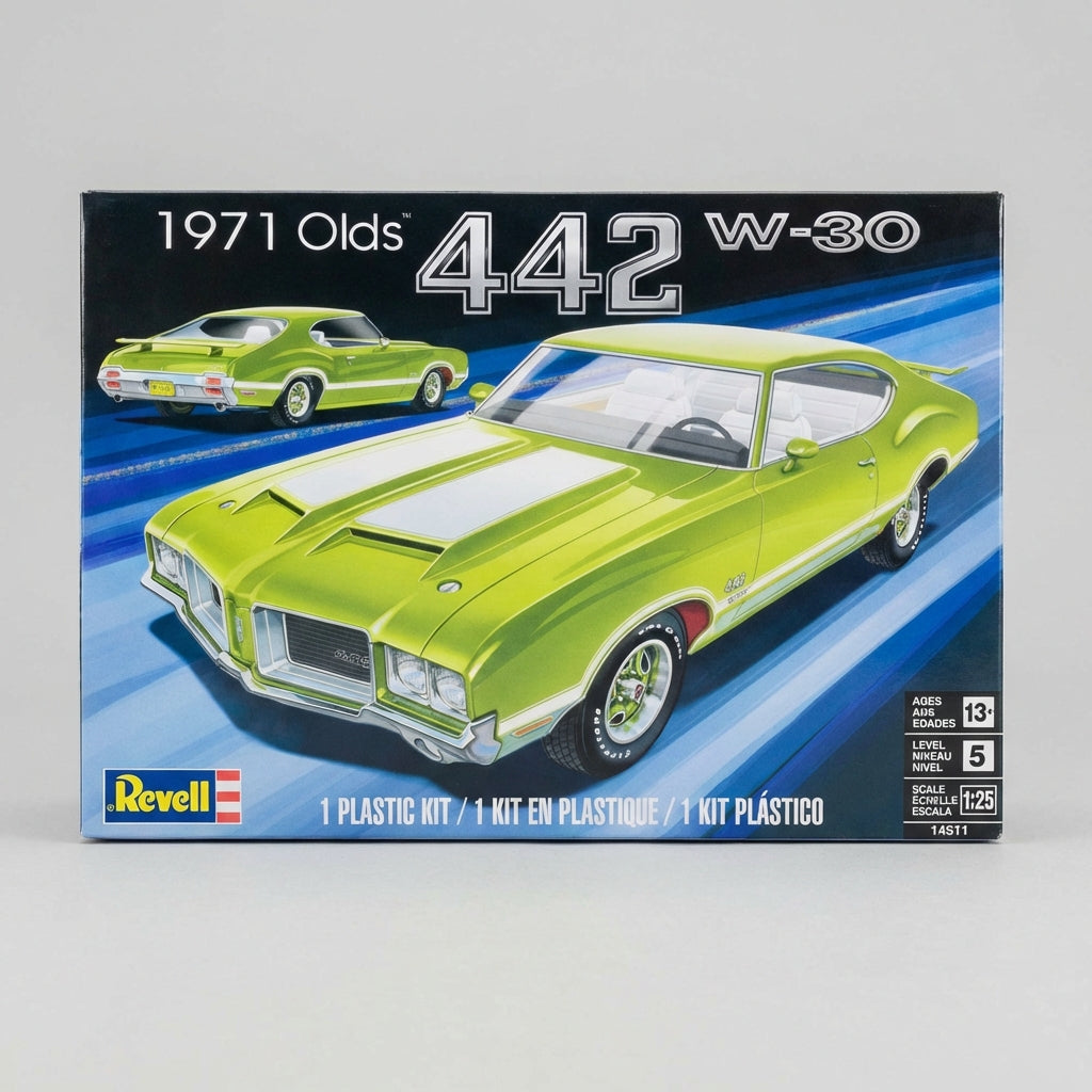 Unleash your creativity with the Classic Rides™ 1971 Oldsmobile 442 W-30 model kit! Featuring 139 intricately detailed parts including a stunning V-8 engine and two console options, this kit delivers an authentic building experience. With chrome accents and colorful decals, your finished model will be a standout piece. Get ready to build a classic masterpiece that will impress any car enthusiast!