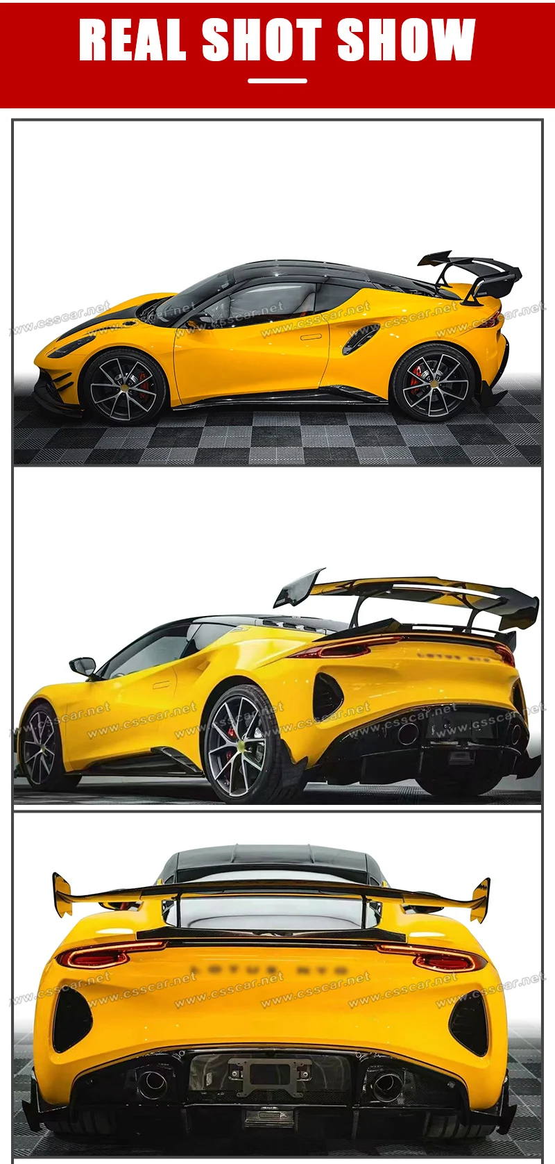 CSS Design Dry Carbon Fiber High Tail Wing Car Accessory For Lotus Emira MK 2 Style Auto Rear Bumper Trunk Roof Spoiler Brackets