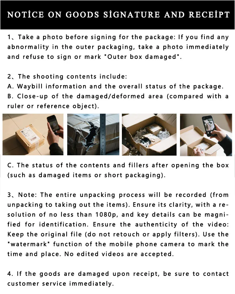 2、由于属于国际运输,时间长,路途远。轻微的磕碰、碰撞导致的变形,同样不作为退换货条件;