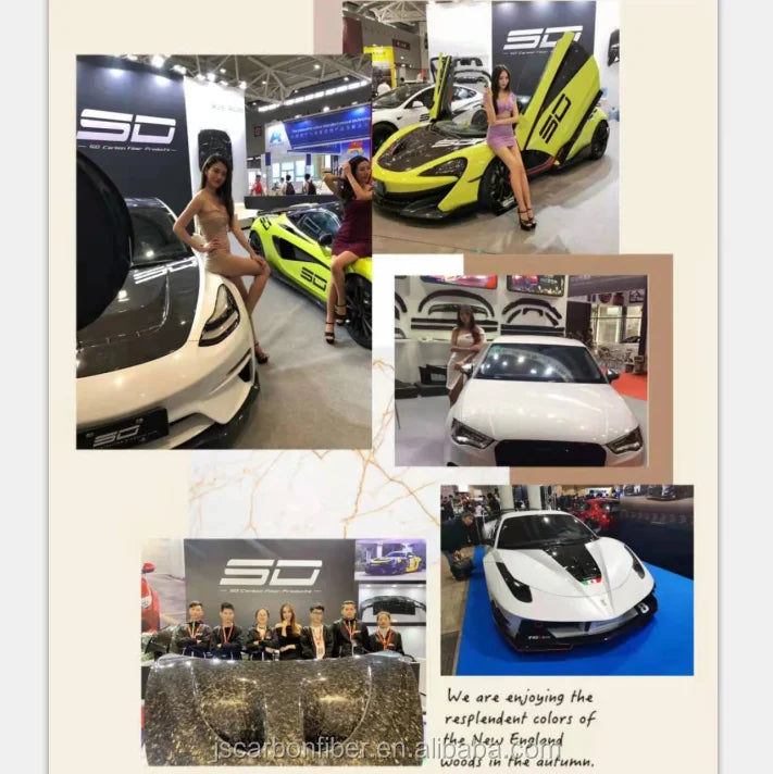 Our company is established in 2009, located in Dongguan city, Guangdong province,China. We specialize in the research, development and production of carbon fiber and FRP car turning parts such as car front lips, rear lips, front bumpers, rear bumpers, side skirts, bonnets, rear spoilers and rear trunk covers, etc. We also provide OEM and ODM services. All of our products comply with international quality standards and are greatly appreciated in a variety of different markets throughout the world. Our well-equipped facilities and excellent quality control throughout all stages of production enables us to guarantee total customer satisfaction. As a result of our high quality products and outstanding customer service, we have gained a global sales network reaching European countries North and South American countries, Australia and Asian countries. Please free to contact us,we looking forward to hearing from you soon,and to the possibility of doing business with you in the future.Thanks a lot.