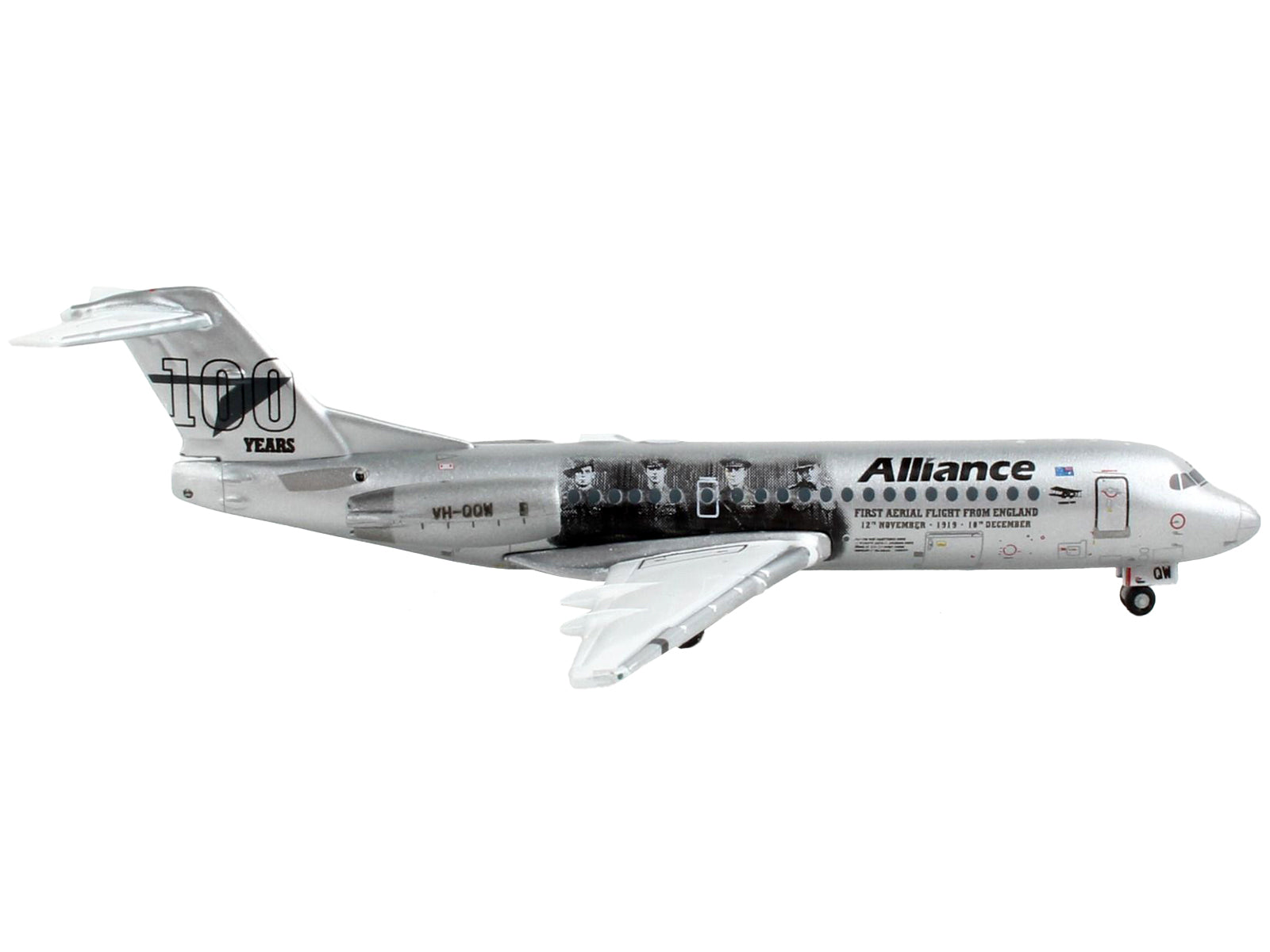 - Brand new 1/400 scale diecast airplane model of Fokker F70 Commercial Aircraft "Alliance Airlines - 100 Years First Flight from England" Silver Metallic die cast model by GeminiJets.