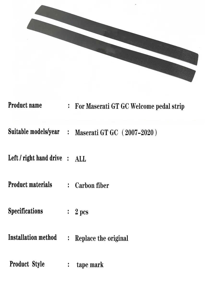 For Maserati GranTurismo GT GTS GC MC carbon fiber welcome pedal decorative strip and threshold strip replacement style 2007-20