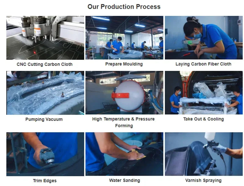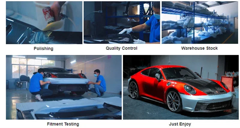 Guangzhou Jinyue Company is a company specializing in the development, production, and sales of automotive modification and body parts, and has become one of the most promising and rapidly growing companies in the industry. We mainly focus on producing various series of supercar exterior carbon fiber modified parts, including carbon fiber front bumper, carbon fiber rear bumper, carbon fiber side skirts, carbon fiber wheel arches, carbon fiber grille, carbon fiber tail wing, carbon fiber fender, carbon fiber hood, etc. We are positioned in the after-sales and ODM markets, and many of our products have been sold to many countries such as Taiwan, Dubai, the Middle East, Europe, the United States, Africa, and Southeast Asia. Therefore, we have established a strong brand and reputation in this market. In addition, our production department has more than 10 types of processing equipment that can quickly produce products to meet market demand. In addition, we have a testing center that can conduct various forms of automotive modification and accessory conformity testing in accordance with GB, ECE, and SAE standards. All of our products have undergone real car alignment and mold making, with perfect fit. Before each product is shipped, our quality inspectors carefully inspect it, ensuring that there are no quality issues. You can purchase with confidence. We look forward to working with Chelaiwang Automotive Parts Co., Ltd. to create a better future together.