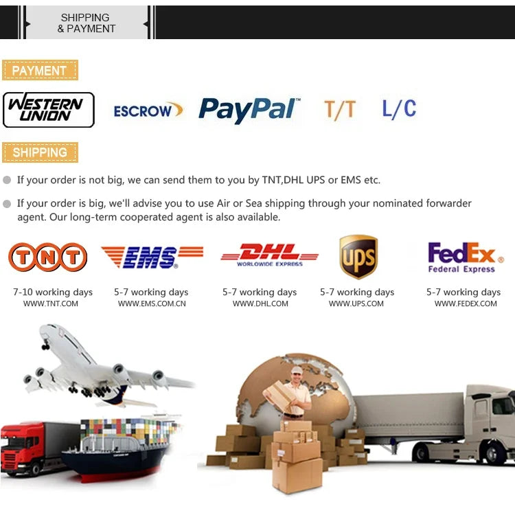 Q1. What is your terms of packing? A: The product is wrapped by bubble film, packed into a carton, and then reinforced with wooden frame outside the carton. Q2. What is your terms of payment? A: T/T 30% as deposit, and 70% before delivery. We'll show you the photos of the products and packages before you pay the balance. Q3. What is your terms of delivery? A: EXW, FOB, CFR, CIF, DDU. Q4. How about your delivery time? A: Generally, it will take 10 to 30 days after receiving your advance payment. The specific delivery time depends on the items and the quantity of your order. Q5. Can you produce according to the samples? A: Yes, we can produce by your samples or technical drawings. We can build the molds and fixtures. Q6. What is your sample policy? A: We can supply the sample if we have ready parts in stock, but the customers have to pay the sample cost and the courier cost. Q7. Do you thoroughly check the product before delivery? A: YES,We are all delivered after 100% careful inspection by professionals. Q8: How do you make our business long-term and good relationship? A:1. We keep good quality and competitive price to ensure our customers benefit ; 2. We respect every customer as our friend and we sincerely do business and make friends with them, no matter where they come from.