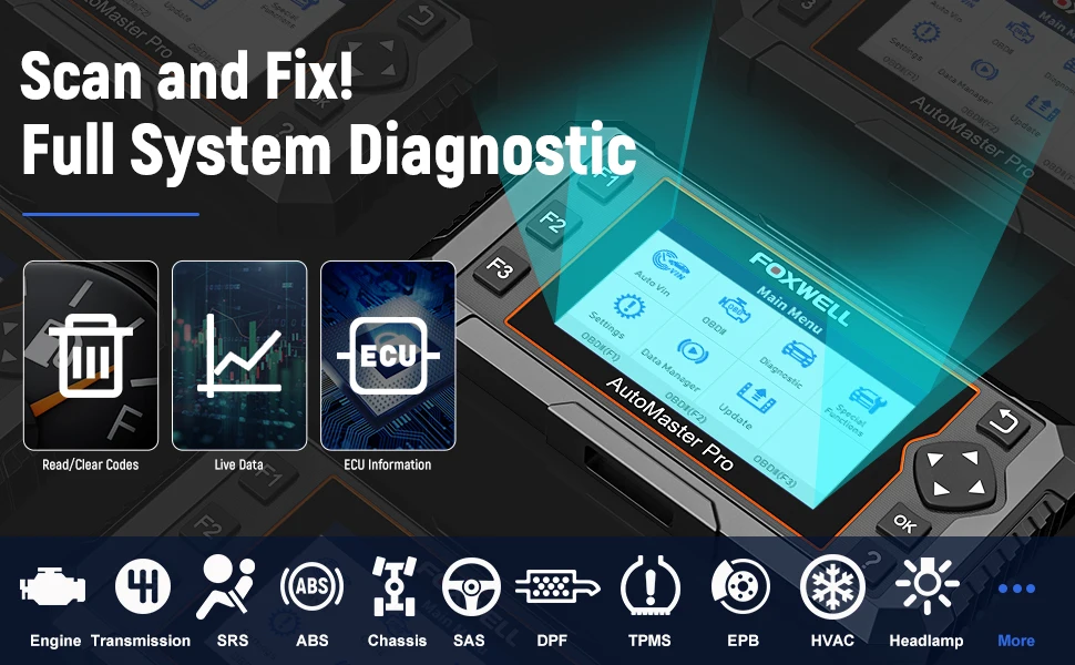 support 64+ Car Brands, 10000+ Vehicles. Have you experienced this embarrassing moment? You purchased a obd2 scanner that was only for 1 specific Vehicle. It worked for a period, while when you buy a new different brand car, it cannot work well and support anymore. That is Foxwell NT624 Elite scanner’s mission!