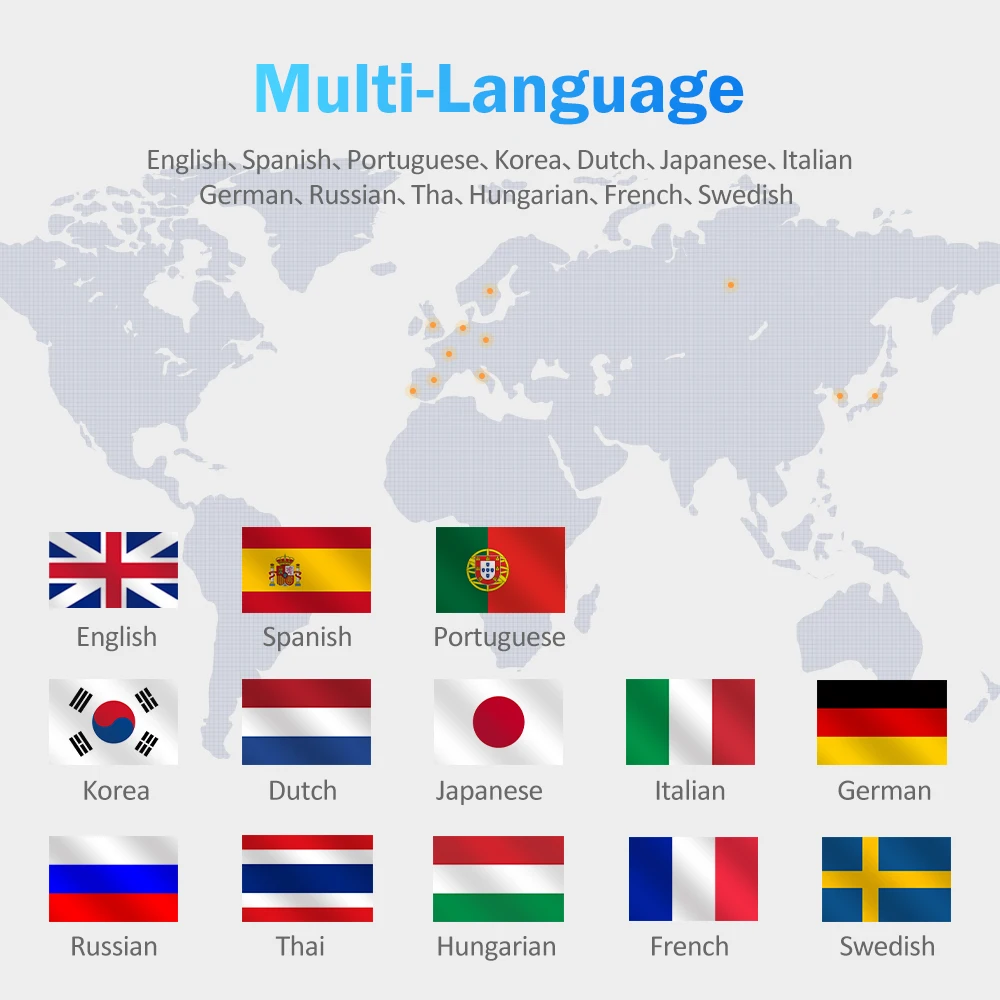 Language: Dutch,English,French,German,hungarian,Japanese,Korea,Russian,Spanish,Swedish,THAI