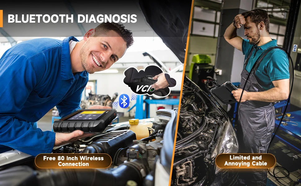 7. Wireless Bluetooth VCI FoxLink I Connection allow you to efficiently diagnose vehicles from a distance of 80 Inches without limited and tangled cables. No more annoying short cables during diagnostics.