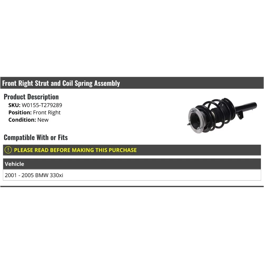 Front Right Passenger Side Strut and Coil Spring Assembly - Compatible with 2001-2005 BMW 330xi