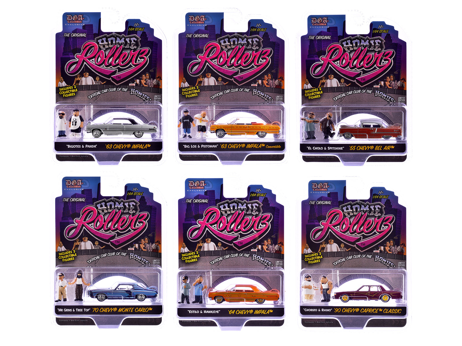- Brand new 1/64 scale diecast car models of "Homie Rollerz" 2025 Series 1 Set of 6 pieces die cast model cars by Greenlight and DGA.