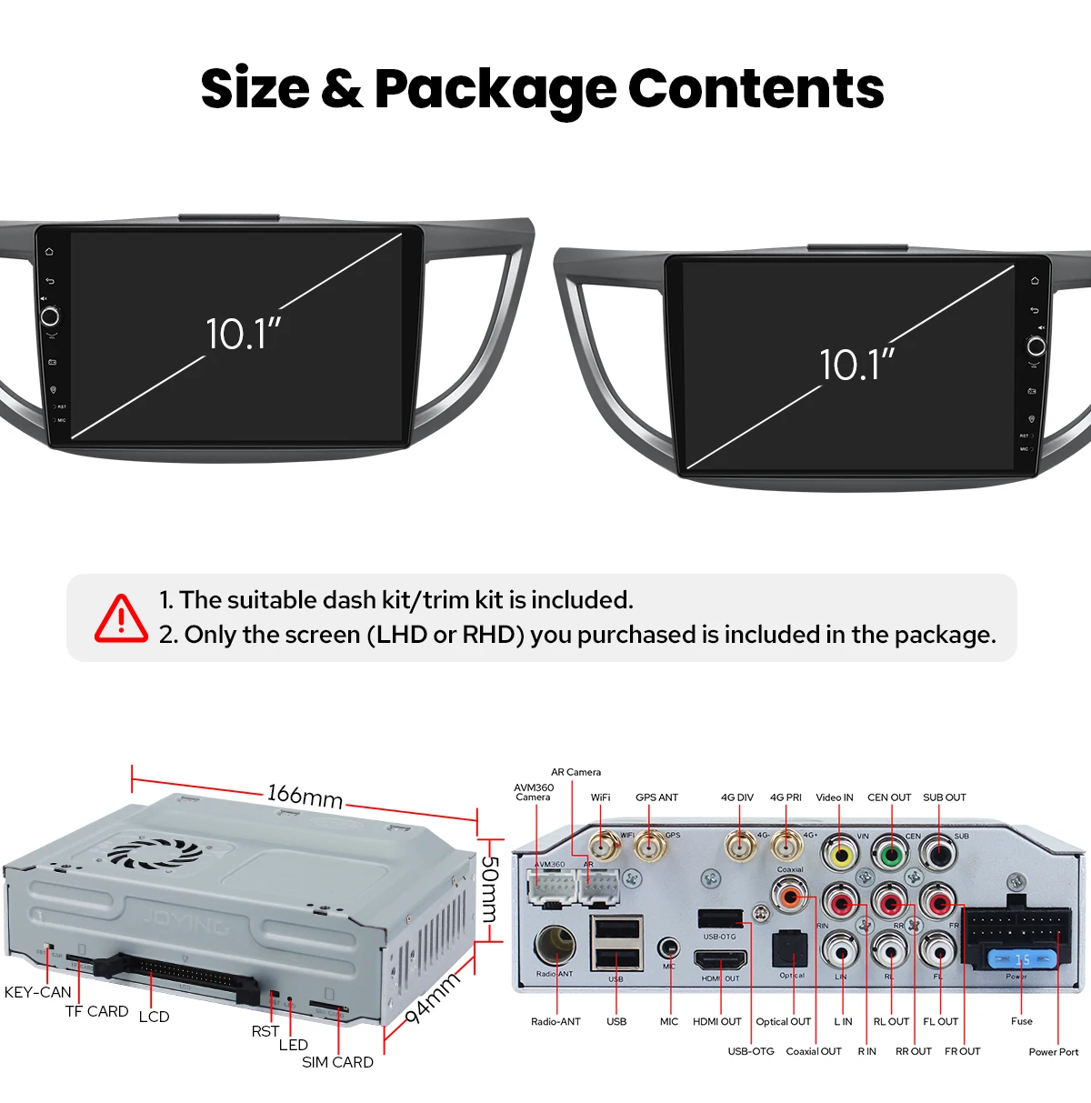 JOYING 10.1"Android 13.0 Car Stereo Radio Multimedia Playere Head Unit With Apple Carplay Android Auto For Honda CRV 2012-2016