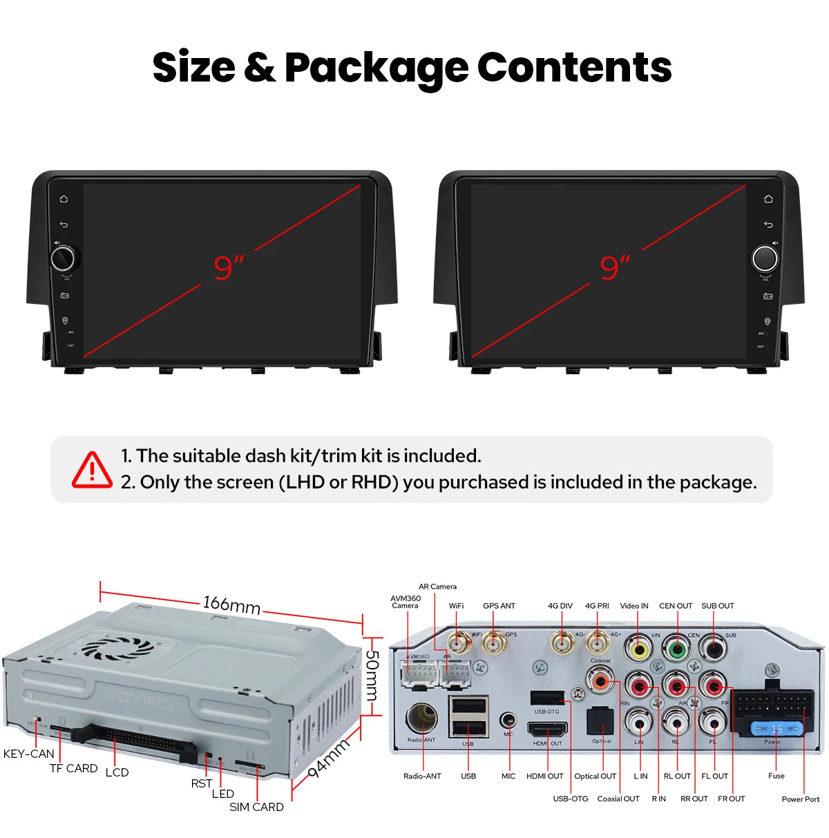 JOYING 9"Android 13 Car Radio Stereo Multimedia Player Carplay For Honda Civic 2016 -2021 Support Factory Cameras Plug and Play