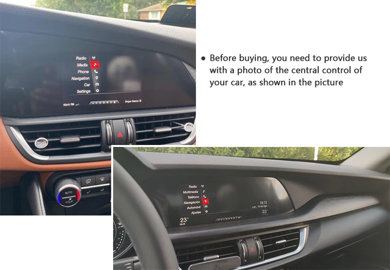 Before buying Alfa Romeo CarPlay Smart module, you need to provide us with a photo of the central control of your car, as shown in the picture