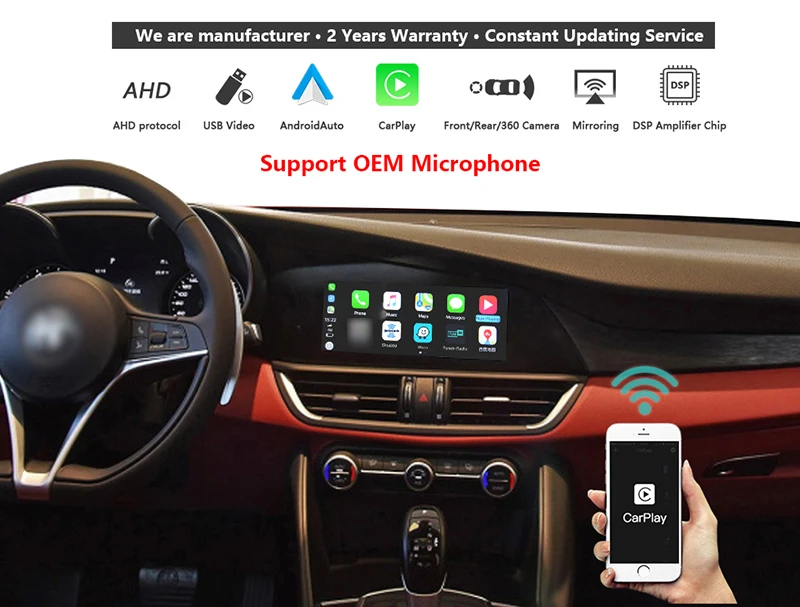 kSmart Auto Wireless CarPlay Android Auto for Alfa Romeo Stelvio & Giulia 16-19 Models Support OEM Microphone