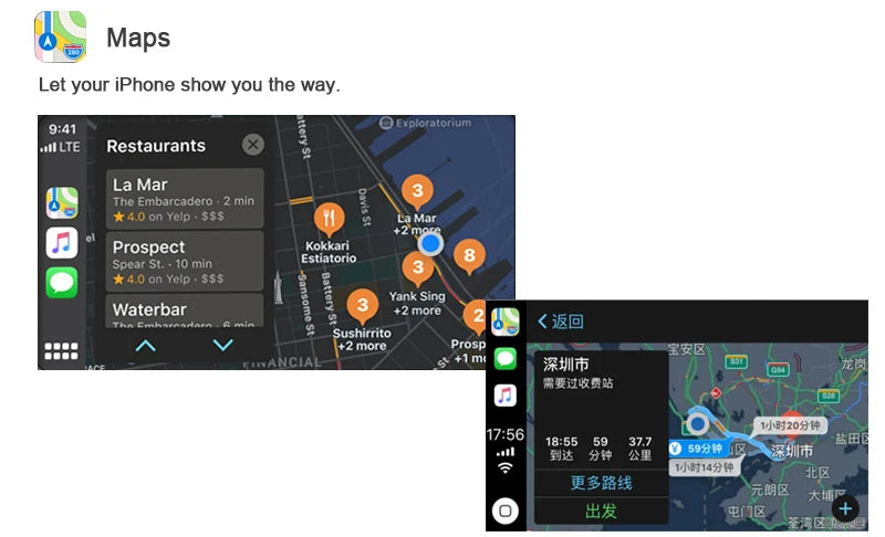 CarPlay is a smarter, safer way to use your iPhone while you drive. And now with an all‑new CarPlay Dashboard that helps you with tunes, turns, and Siri suggestions, a Calendar app that lets you view and manage your day, and maps that reveal more of what’s around you, getting there just got a whole lot easier. And a lot more fun.
