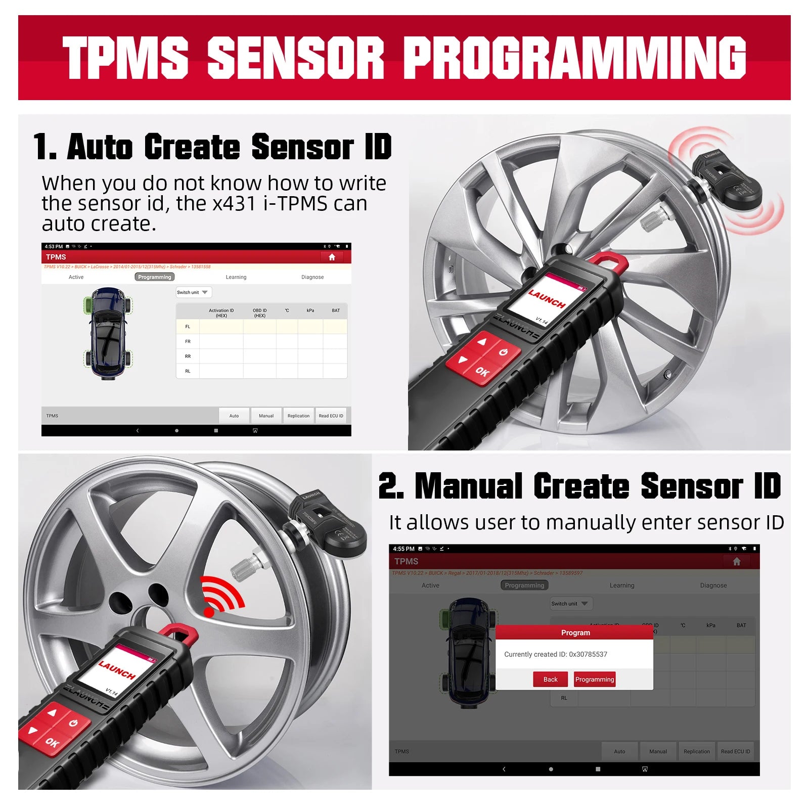 When the original sensor ID cannot be obtained, this function can be used to program the LAUNCH sensor according to the ID randomly created by the test vehicle.