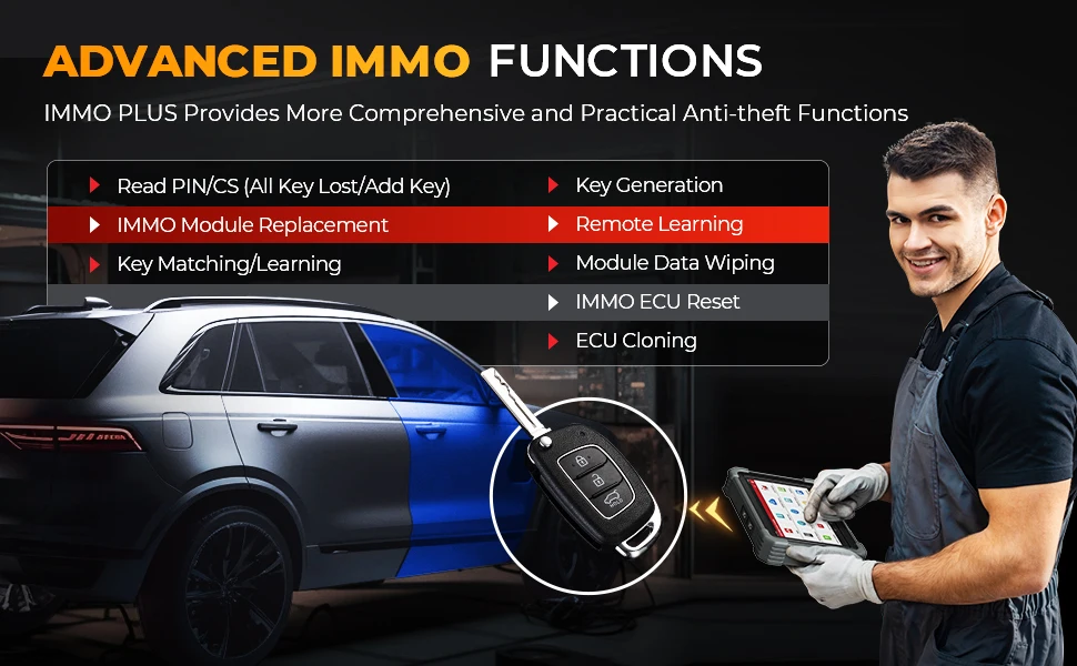 LAUNCH X431 IMMO PLUS combines advanced IMMO functions and 39+ maintenance functions that every mechanic needs for daily repair.