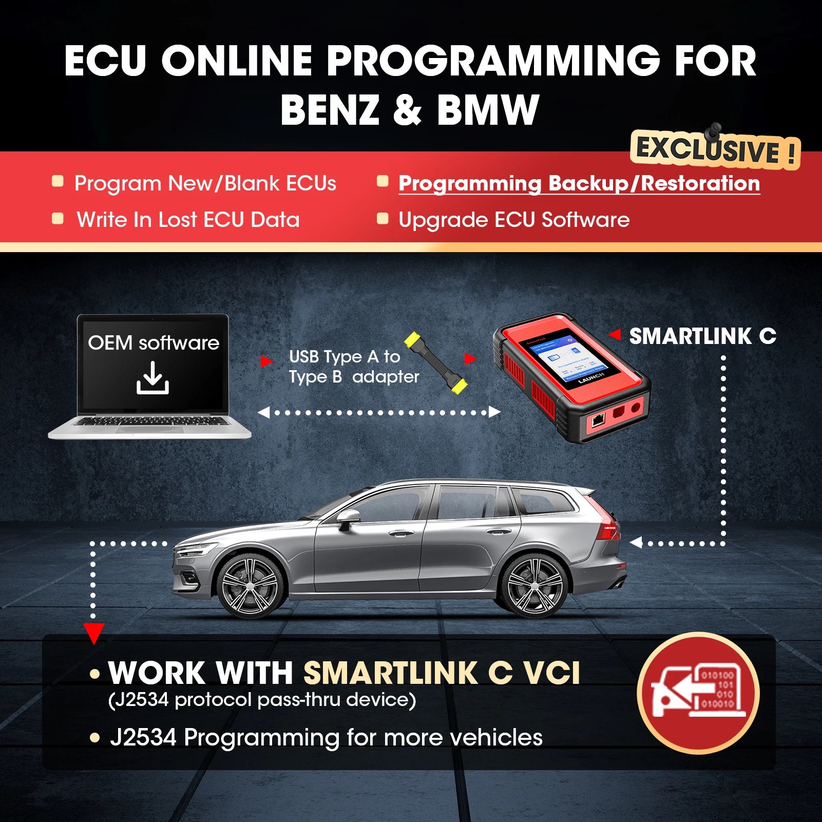 X431 PRO5 work with SmartLink C (J2534 compliant) empowers you to conduct J2534 ECU Programming, just by downloading the OEM software in Automakers’ Service Webs to show the OE-level programming.