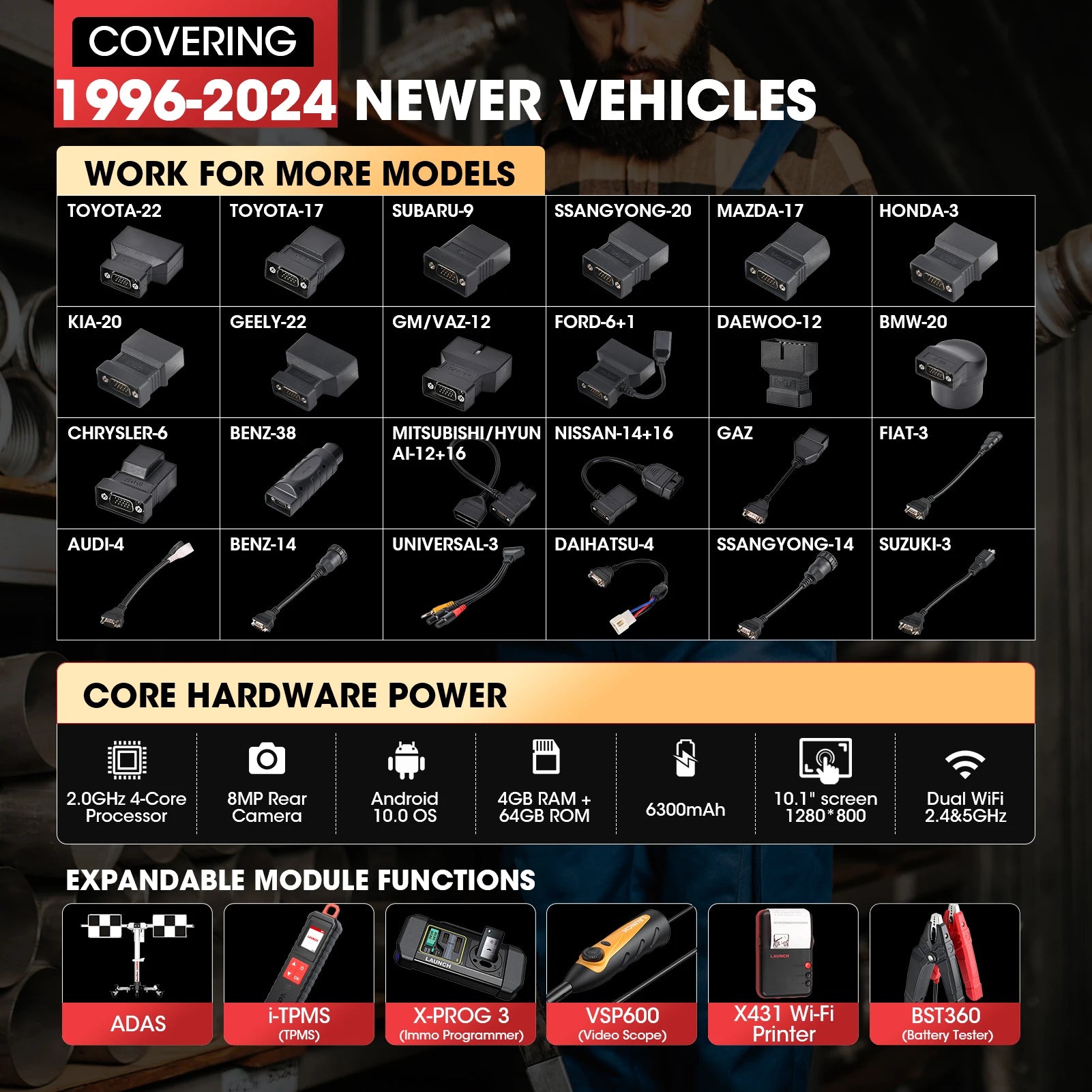 Compatible with X-PROG3, Heavy Duty software, X-431 TSGUN, BST360, VSP-600, ADAS, WIFI Printer etc.