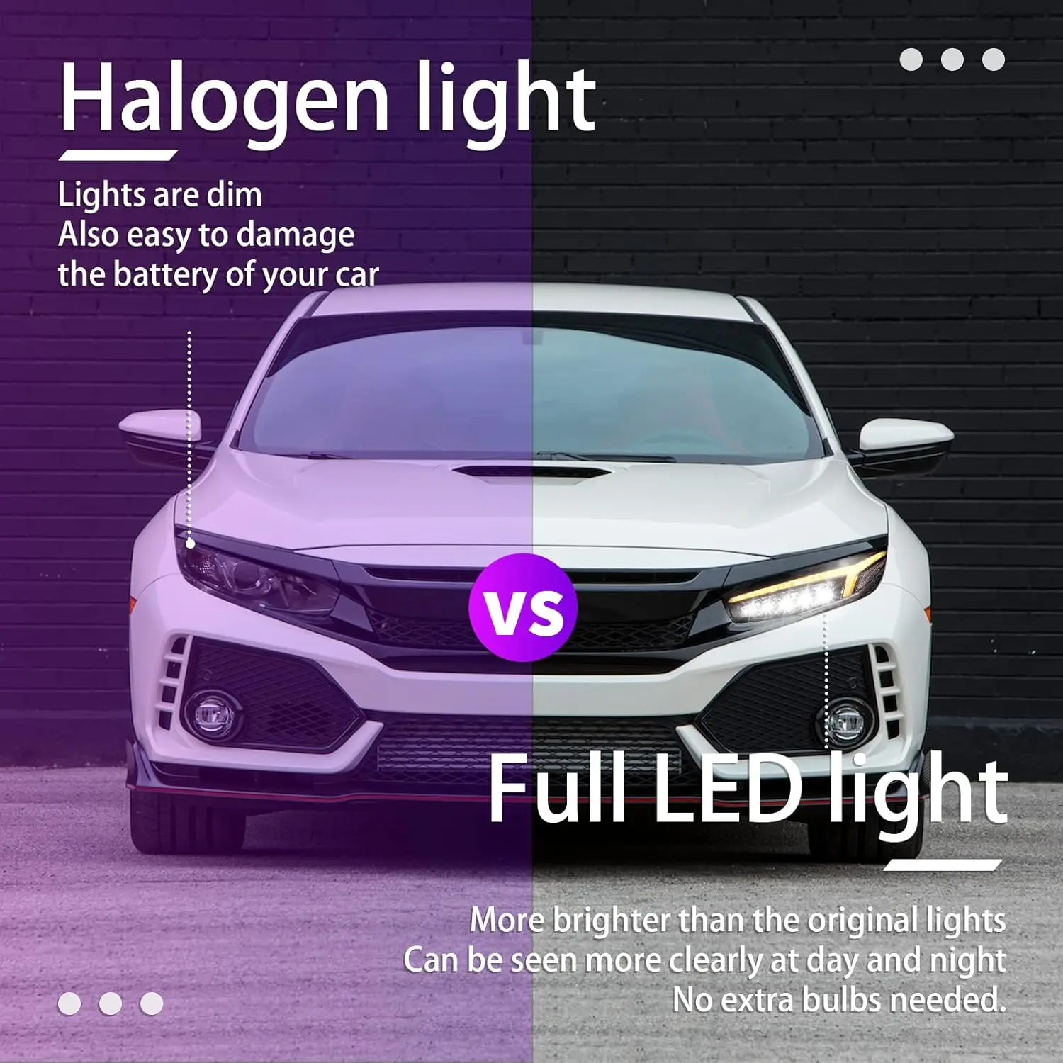 ✅【Fitment】 Compatible with Honda Civic 10th gen Sedan/Hatchback/Coupe/Type-R 2016-2022 (OEM Part Number: 33150-TBA-A11, 33100-TBA-A11). Package includes complete set of headlights, one for each side.