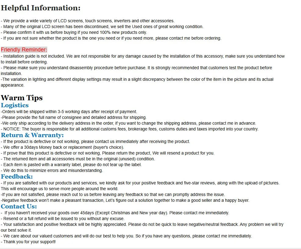 If you need any help, please contact us as soon as possible.We are glad to address any inquiries you may have.