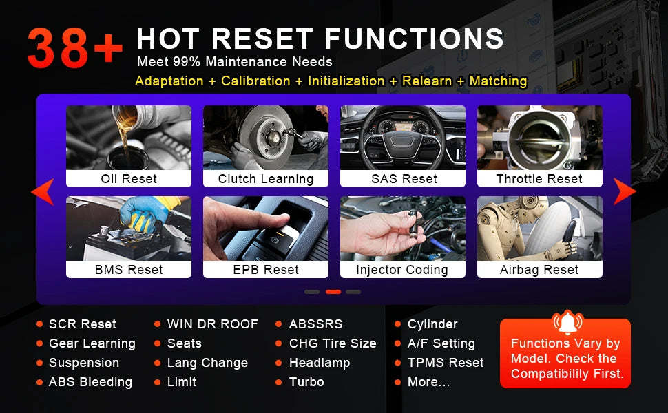 For repair workshops, holding an OTOFIX D1 Lite Auto scanner is a strong advantage over others. Its 38+ maintenance functions provide various solutions for all module repairs, including Oil Reset, TPMS Reset, Injector Coding, Suspension, Throttle Matching, etc., which will usher your repair business to a new pinnacle. Continuously updating will never make the functionality & compatibility out-of-date.