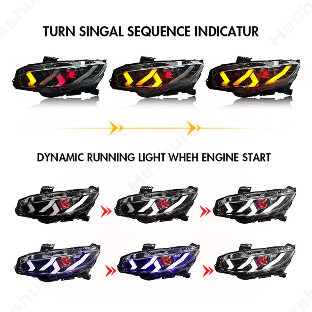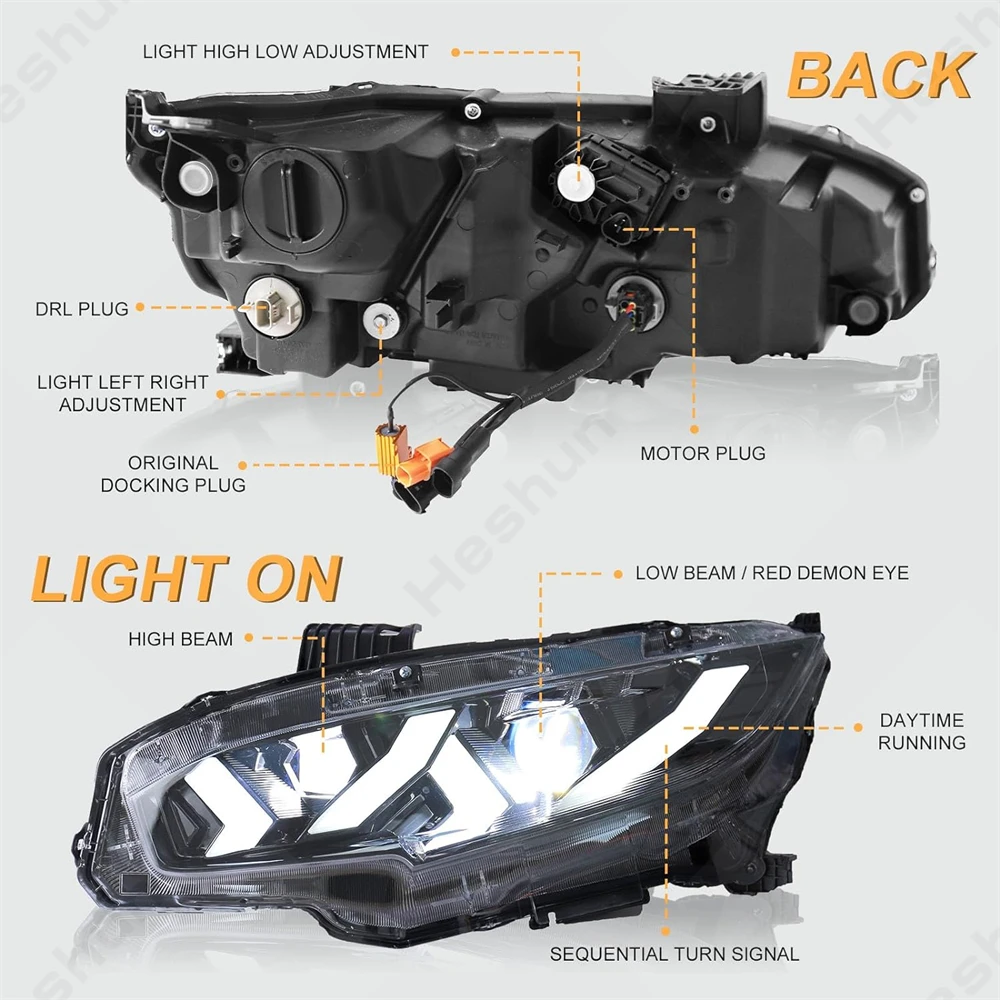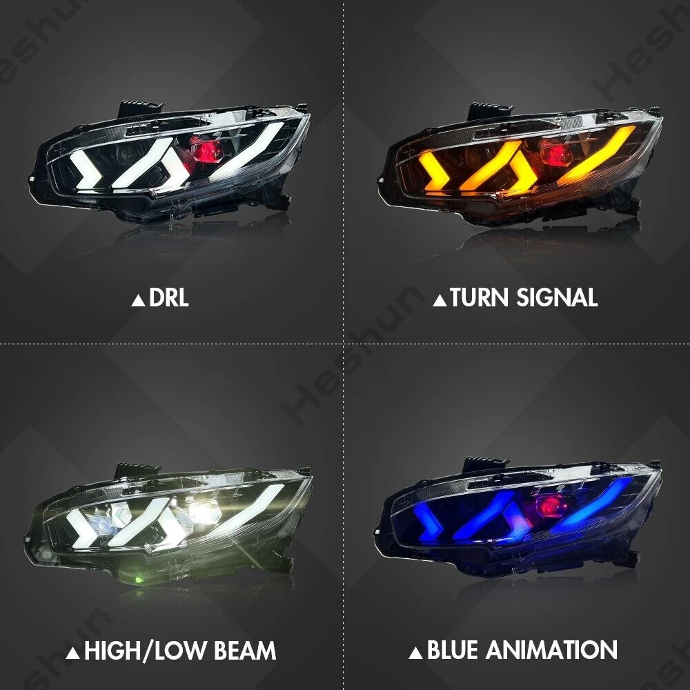 Car Fitment: For Honda Civic Headlights 2016-2021 Sedan Hatchback Hatch Type R Touring LX EX EX-L Sport FK7 FK8 10th Gen