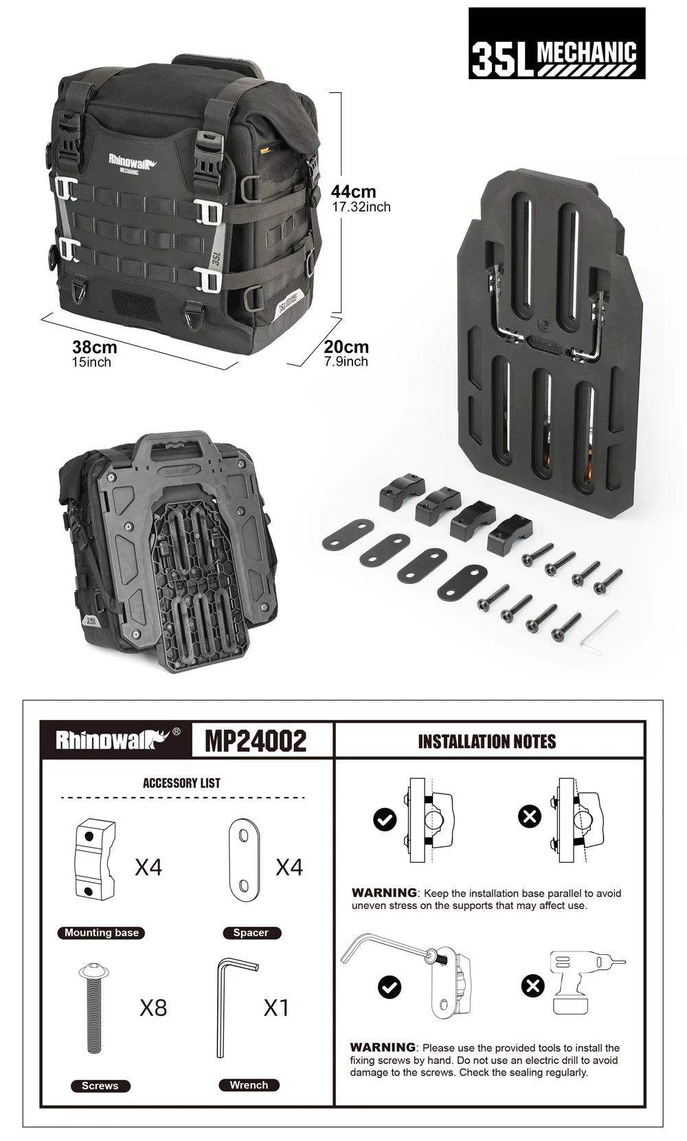 ACCESSORY:Waterproof Inner Bag*1, Map Pocket*1, Quick Release Adapter *1, Set Mounting*1