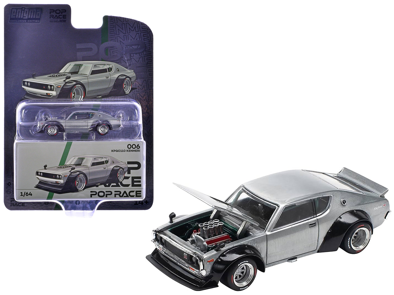 - Brand new 1/64 scale diecast car model of Skyline KPGC110 "Kenmeri" RHD (Right Hand Drive) Raw Metal "Enigma Exclusive Edition" die cast model car by Pop Race.