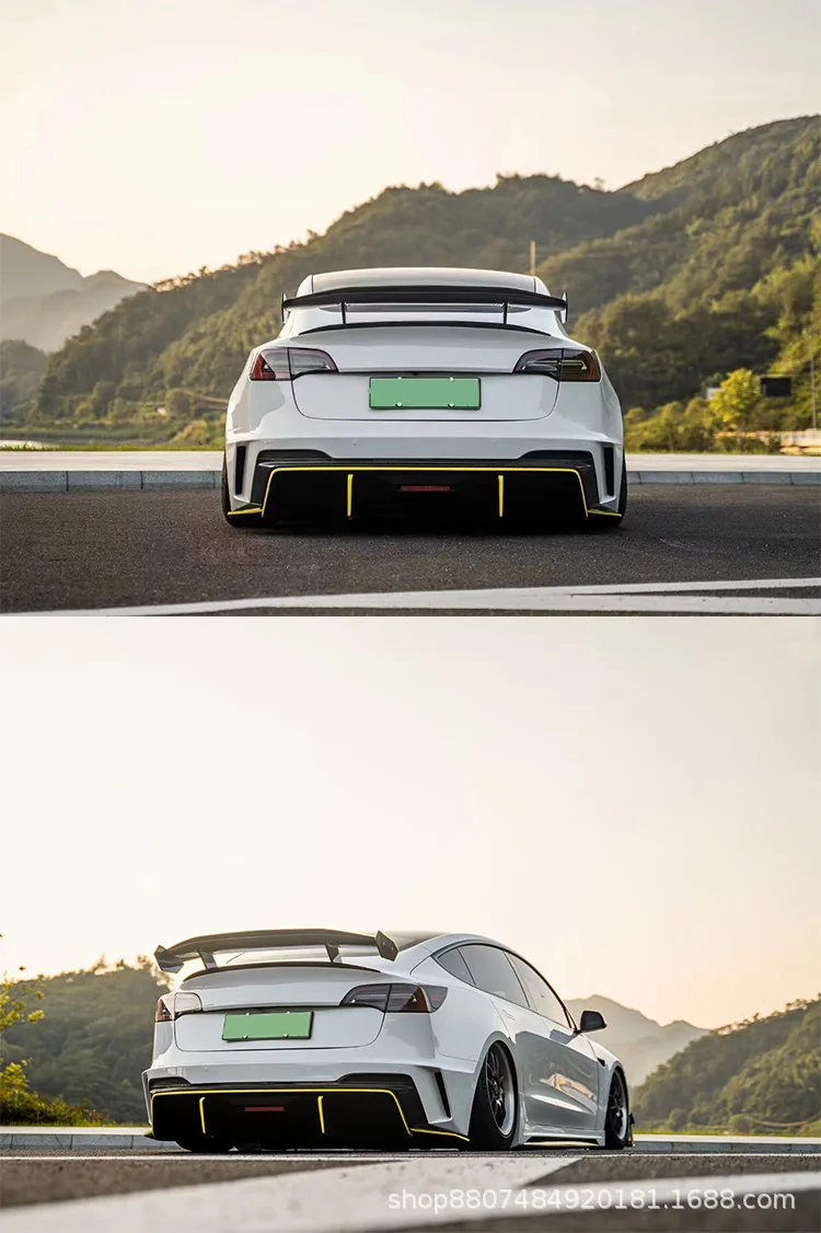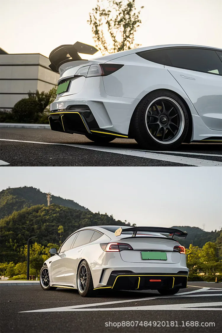 Suitable For Tesla Model3 Modified Hacker Carbon Fiber Wide Body Front Bar Rear Bar Side Skirt Cover Double Rear Wing