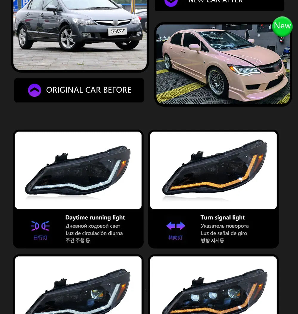 TYPY Car Lights For Honda Civic 8th FD2 Headlight 2012-2015 LED Projetor head Lamp Daytime Running Light Automotive Accessories