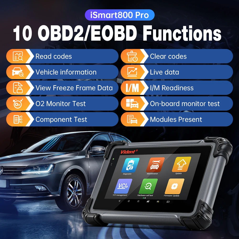 Vident iSmart800Pro Car Scanner All System Diagnosis 40 Reset Function OBDII Full Function Key Fob Programming Scanner Tool