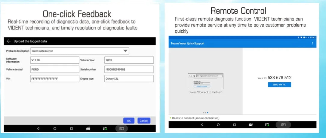 Real-time recording of diagnostic data,one lick feedback to VIDENT technicians,and timely resolution of diagnostic faults